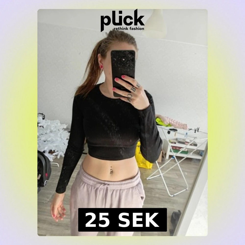 Säljer en svart, croppad långärmad topp med snygg snörning och öppen rygg. Perfekt för dig som vill ha en trendig och edgy look. Materialet känns mjukt och stretchigt, vilket gör den bekväm att bära. Passar dig som gillar att sticka ut och vill ha något unikt i garderoben.