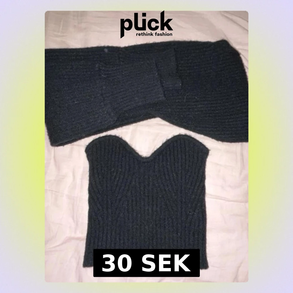Säljer en svart ribbad stickad tubtopp med hjärtformad urringning. Toppen är croppad och sitter tight, perfekt att styla med höga jeans eller kjol. Supermjuk och skön mot huden. Följer med matchande kofta!