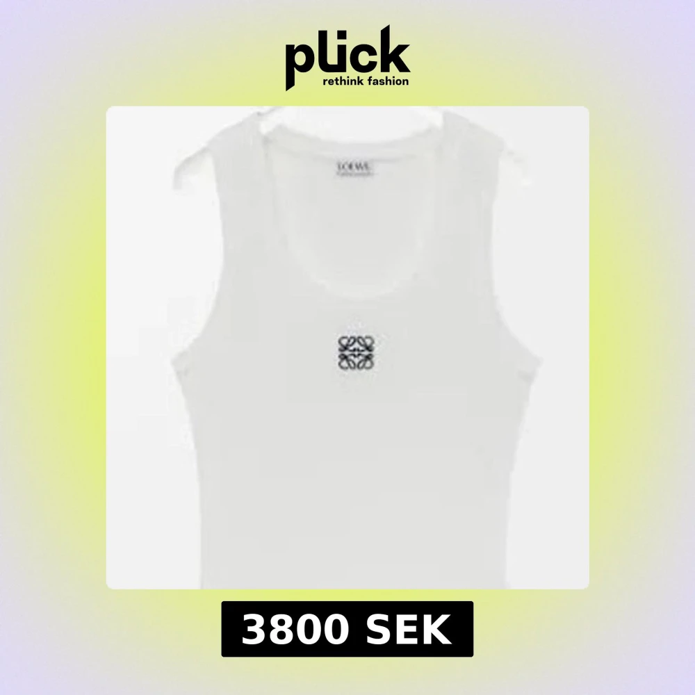 Säljer en stilren vit ribbad linnetopp från Loewe. Toppen har en enkel design med ett litet tryck framtill och är tillverkad i mjukt material. Perfekt för en minimalistisk look.