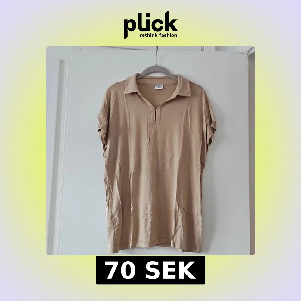 Säljer en stilren beige polotopp från Stories. Toppen har en avslappnad passform med korta ärmar och en klassisk krage. Perfekt för en enkel och chic look.