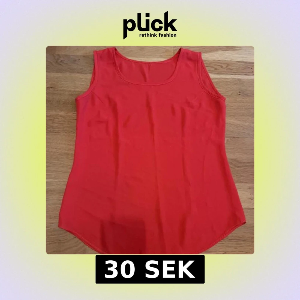 En enkel och stilren röd-orange linnetopp med rundad halsringning och figurnära passform. Toppen är ärmlös och har en lätt rundad nederkant.