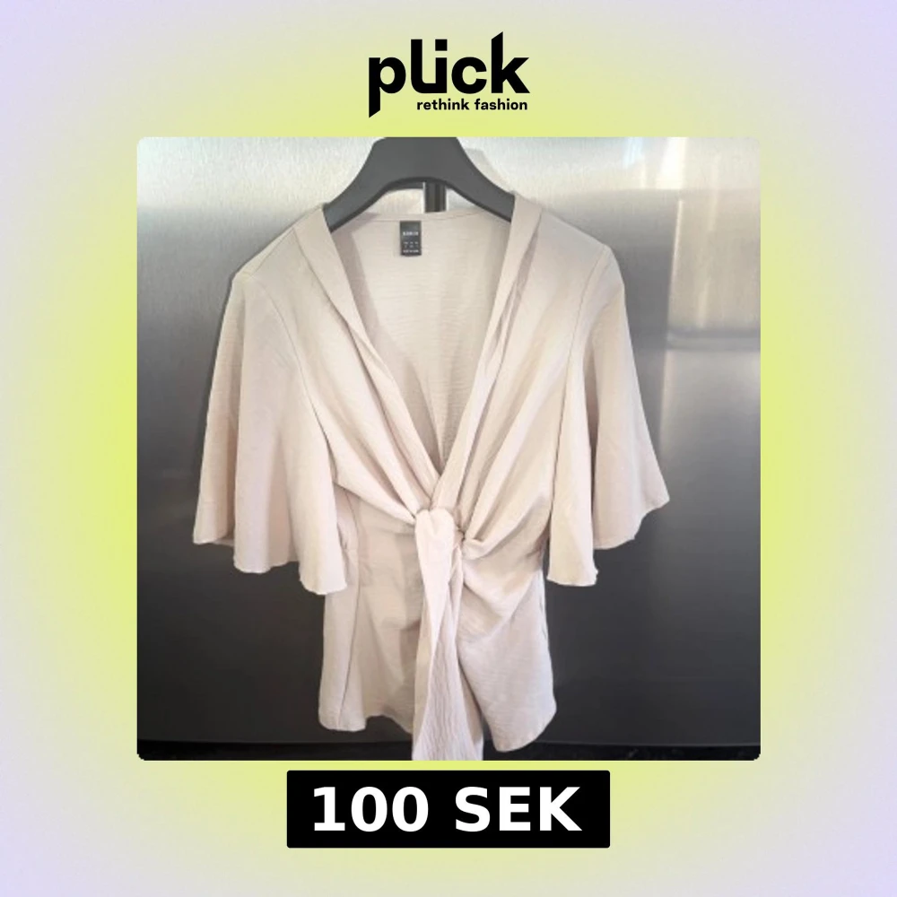 Säljer en beige omlottopp från SHEIN med snygg knytning framtill och vida, korta ärmar. Toppen har en avslappnad passform och lätt struktur i tyget, perfekt för en chill och trendig look.