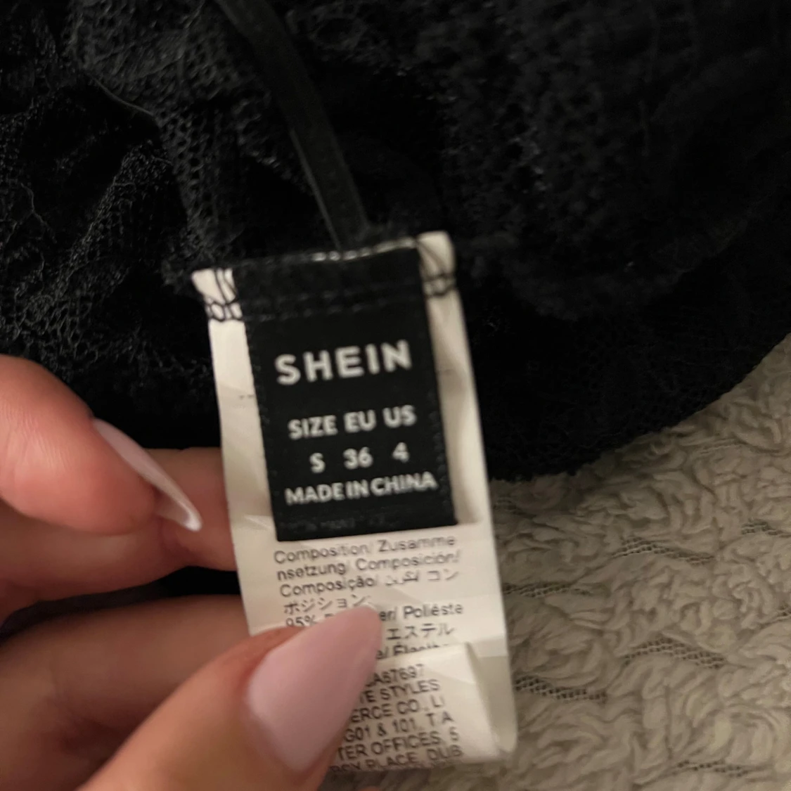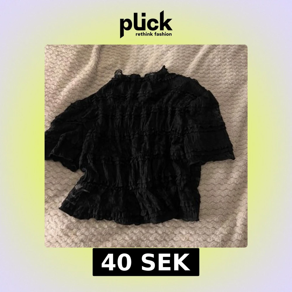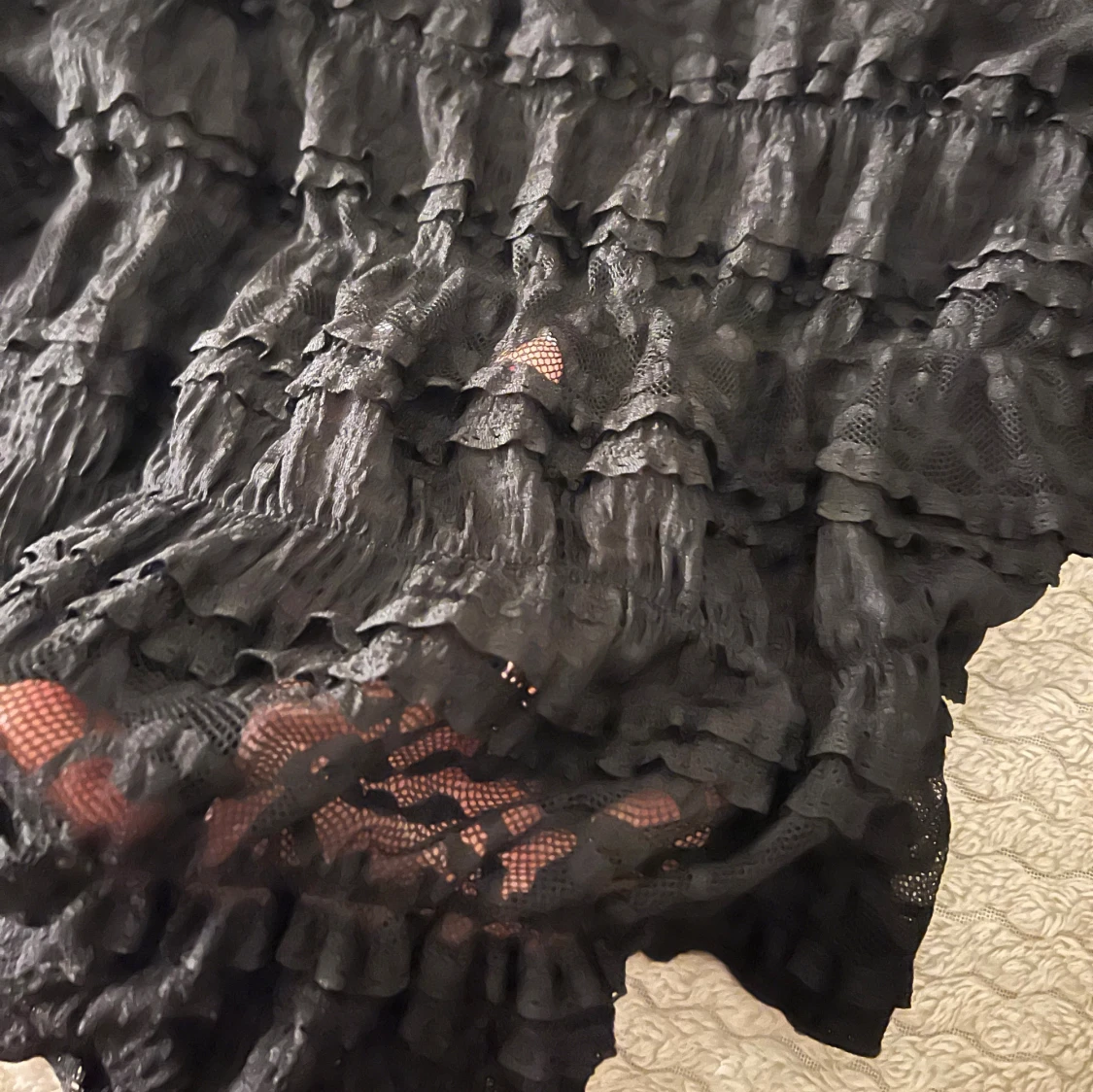 Svart blus från SHEIN i storlek S med flera lager volanger och transparent spets🥰