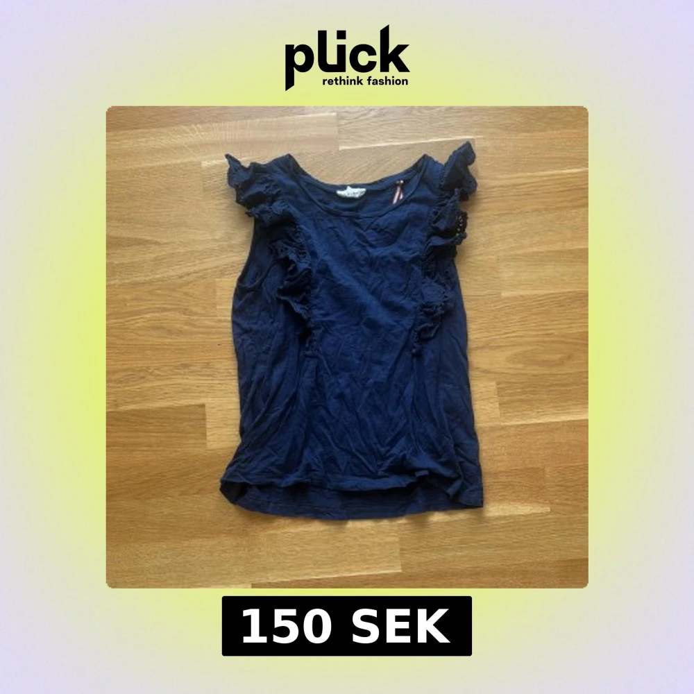 Supersöt mörkblå ärmlös topp från Holly & Whyte by Lindex. Toppen har volangdetaljer med broderade spetsar längs axlarna och sidorna, vilket ger en romantisk och trendig look. Perfekt att styla med jeans eller kjol för en cool vibe.