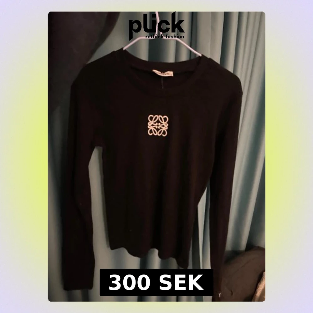 Svart långärmad topp från Loewe med rund halsringning och den ikoniska Loewe-loggan broderad i vitt framtill. Enkel och stilren design som passar perfekt till jeans eller kjol. Materialet känns mjukt och stretchigt.