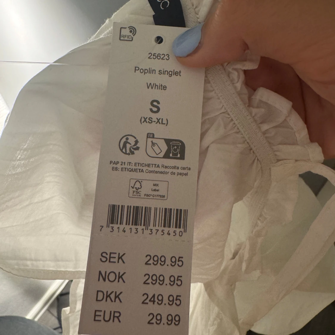 Supersöt vit linnetopp i poplin med smala axelband, volangdetaljer vid bysten och liten knytning framtill. Luftig och flowy passform som är perfekt för varma dagar. Enkel att styla med både jeans och kjol.