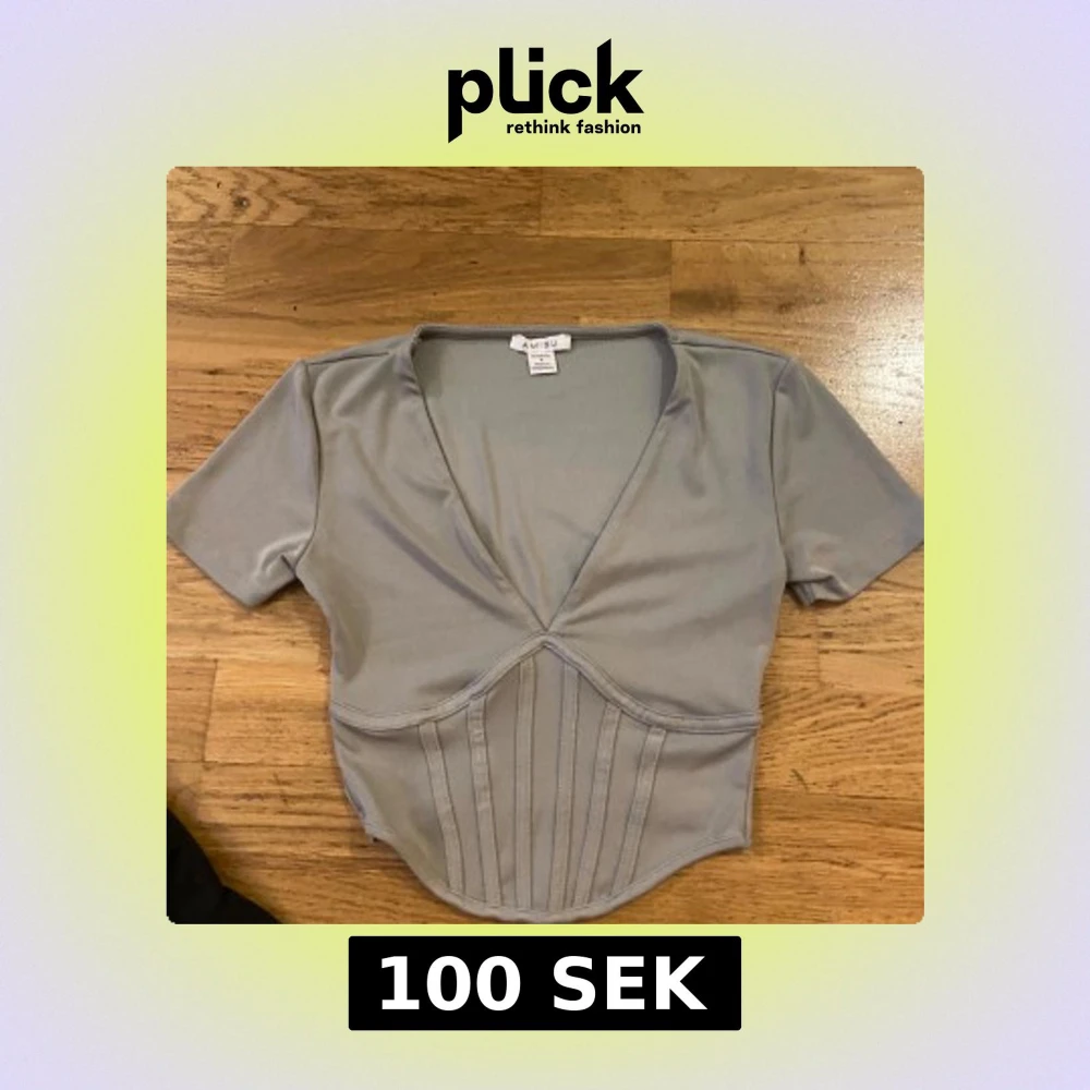 Trendig ljusgrå topp med korsettliknande detaljer och v-ringning. Toppen har korta ärmar och tight midja för en snygg siluett. Perfekt för att lyfta din outfit.