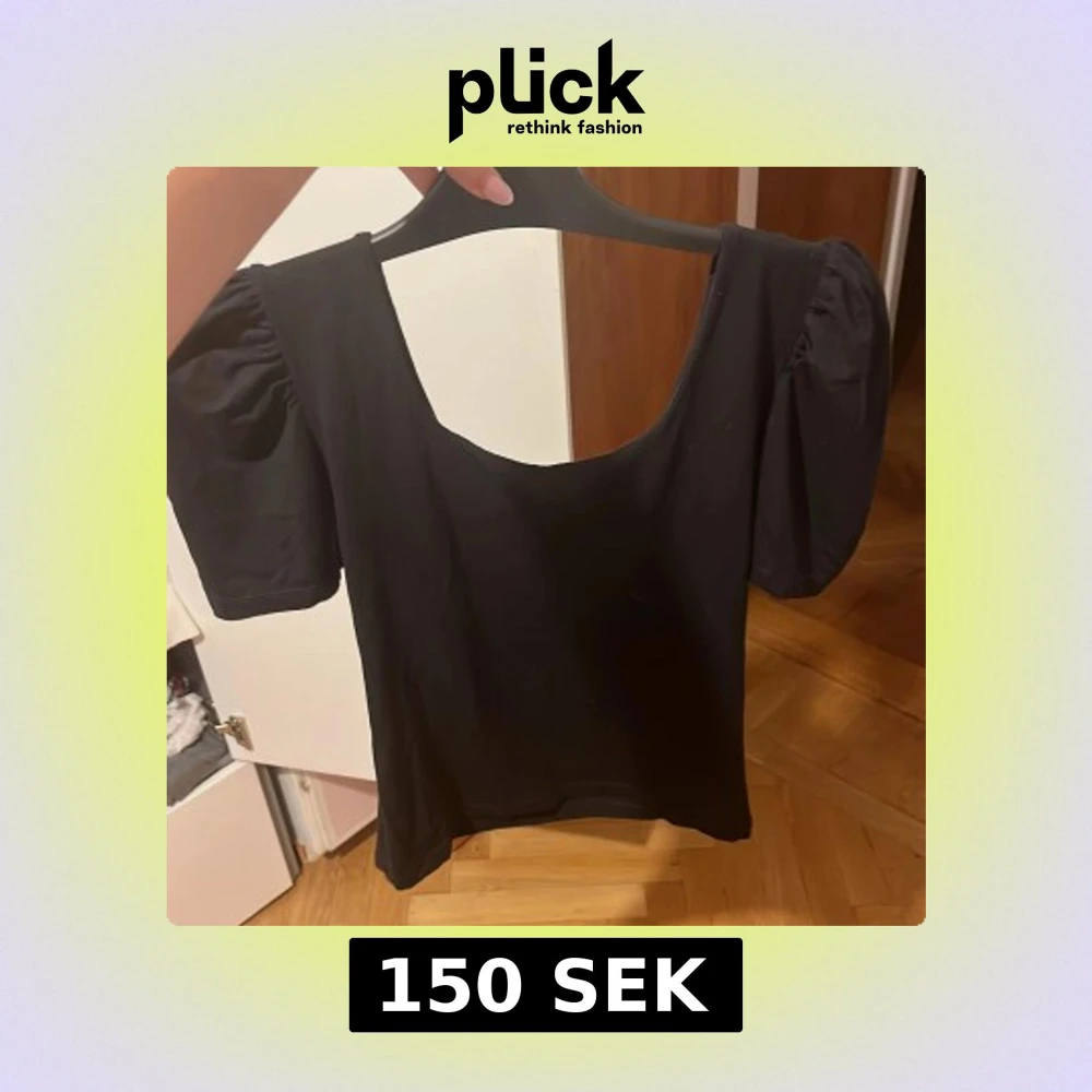 Svart topp från Basic med bred, rundad urringning och korta puffärmar. Toppens material känns mjukt och stretchigt, perfekt för en enkel men snygg look. Passformen är normal och toppen är helt enfärgad utan mönster.