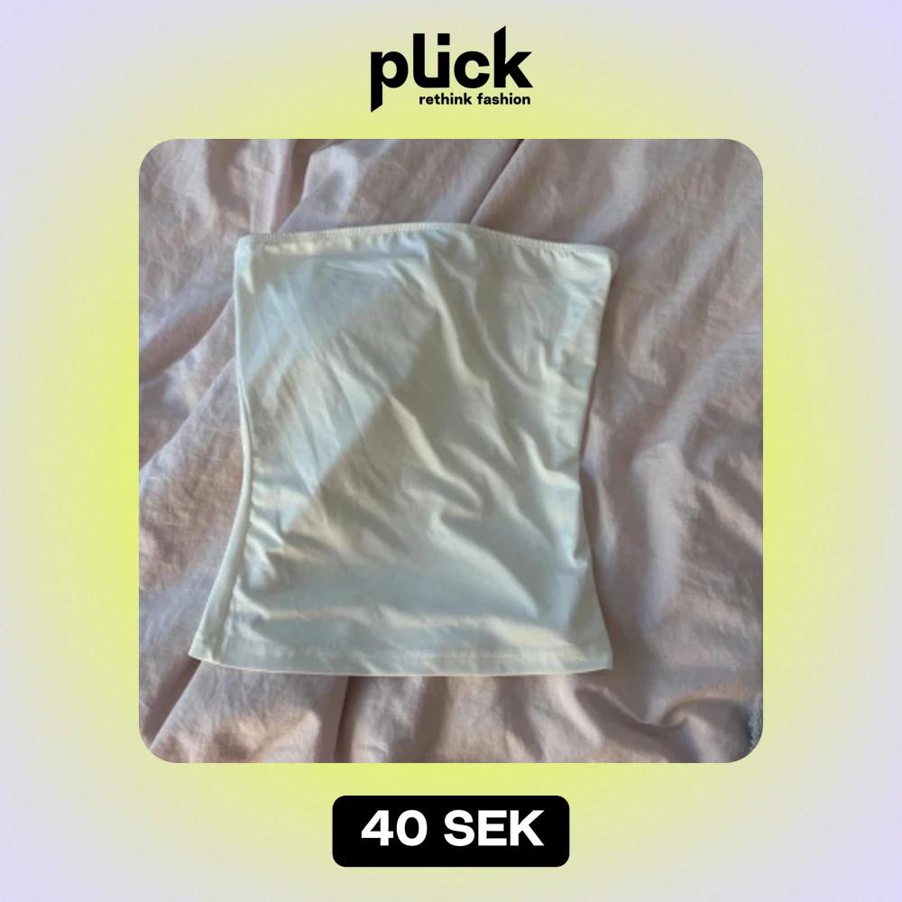 Säljer en stilren vit tubtopp i mjukt material. Perfekt för sommardagar eller som basplagg under en kavaj. Toppen är axelbandslös och har en tight passform som sitter snyggt på kroppen.🤩