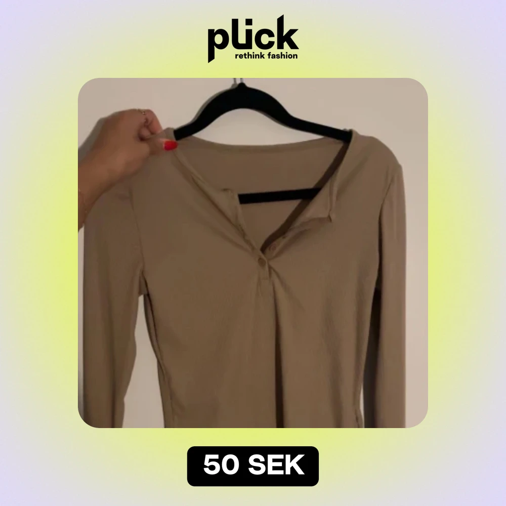 Säljer en snygg beige ribbad topp med långa ärmar. Den har en enkel design med knappar framtill och är perfekt för både vardag och fest. Toppen är i ett mjukt och stretchigt material som sitter skönt på kroppen.