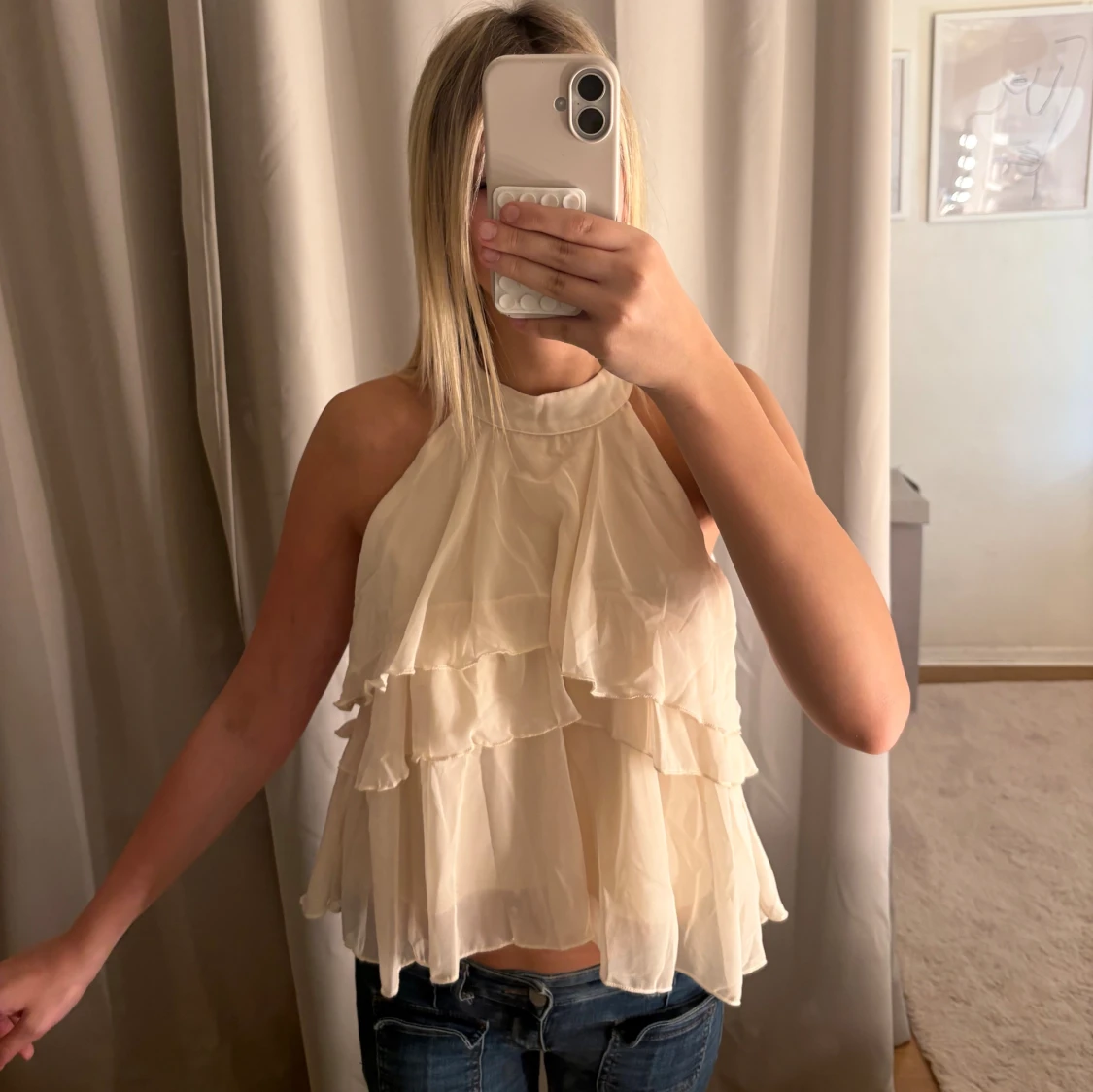 Beige blus, väldigt fin och passar bra till många tillfällen. Aldrig använt bara testat