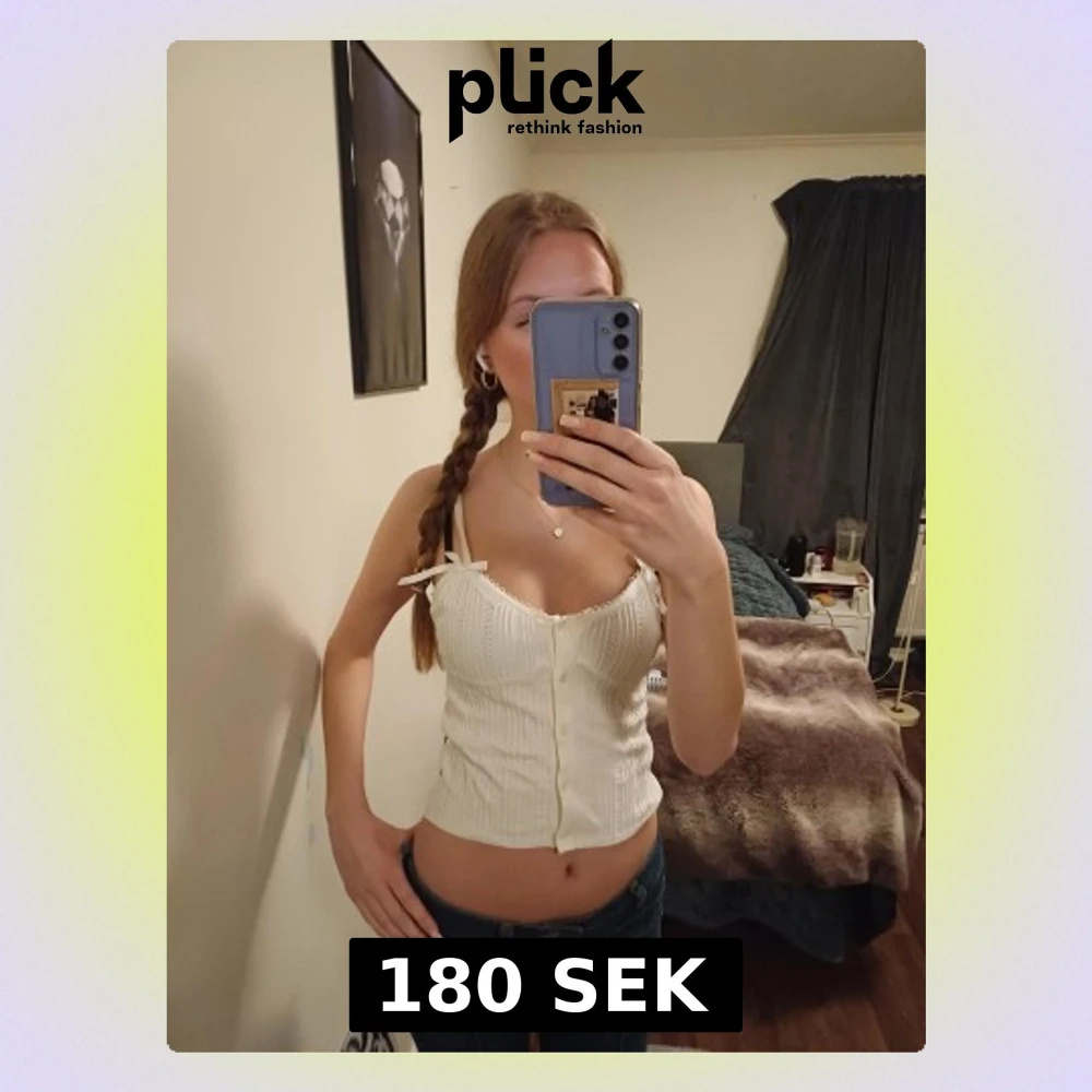 Supersöt vit linnetopp med ribbad struktur och små hålmönster. Toppen har knappar framtill, smala axelband med rosetter. Storlek S men xs kan också ha den ❤️