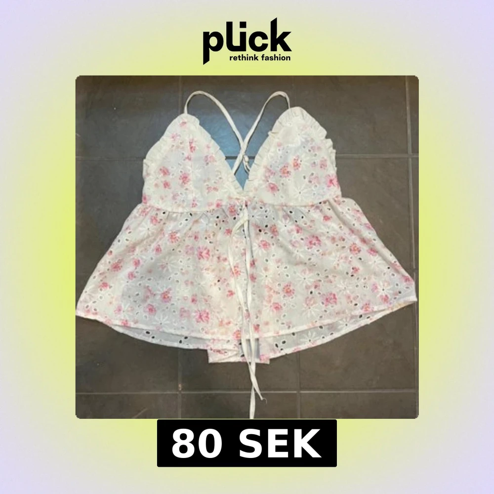 Söt blommig blus i vitt och rosa med volangdetaljer och knytband framtill💝