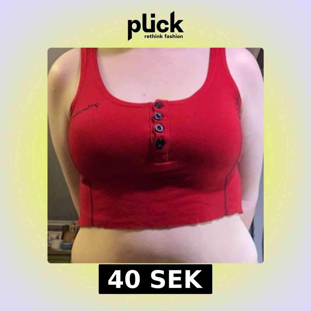 Säljer en röd croppad linnetopp med knappar framtill. Toppen har en enkel design med breda axelband. Storlek s men stretchig och passar större.