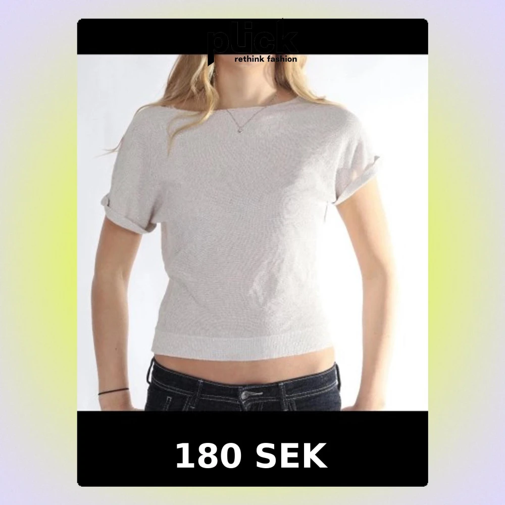 En enkel och stilren ljusbeige croppad topp med korta ärmar och rund hals. Toppen har en mjuk och tunn känsla, perfekt till jeans eller kjol. Ärmarna är lätt upprullade för en avslappnad look.