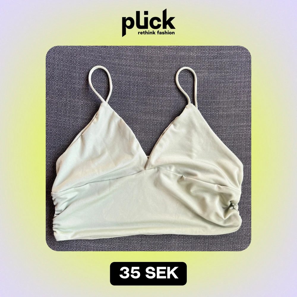 Säljer en superfin grön (mycket grönare i verkligheten) topp med smala axelband. Toppen har en enkel och stilren design med rynkade detaljer på sidorna som ger en snygg touch. Perfekt för sommardagar eller som ett lager under en kofta. Materialet känns mjukt och skönt mot huden.