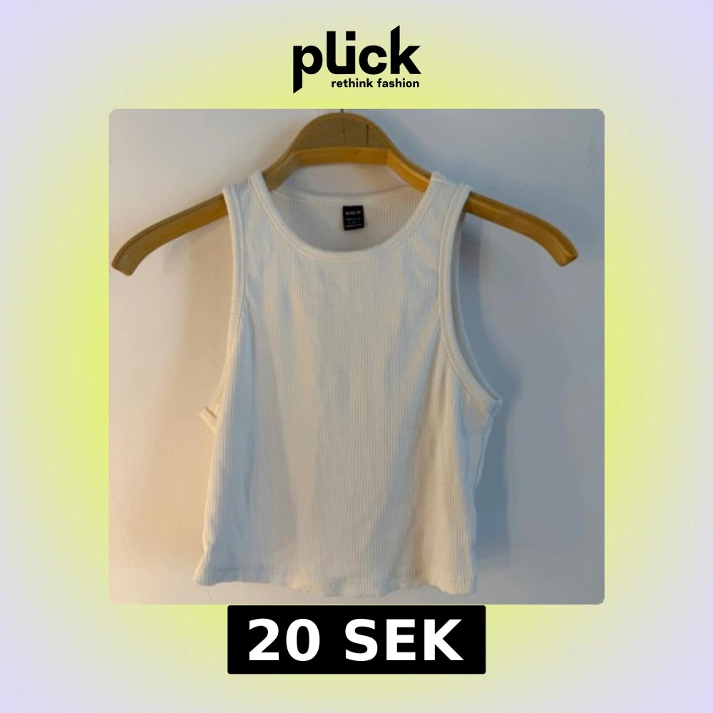 Vit, ribbad crop top med rund halsringning och breda axelband. Storlek S