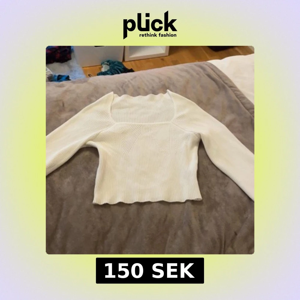 Säljer en vit ribbad topp med lång ärm och fyrkantig halsringning. Toppen har en croppad passform och vågig kant nedtill, samt snygga ribbade detaljer som ger extra stilpoäng. Perfekt för dig som gillar minimalistisk och fräsch look. Pris kan diskuteras och köparen står för frakt