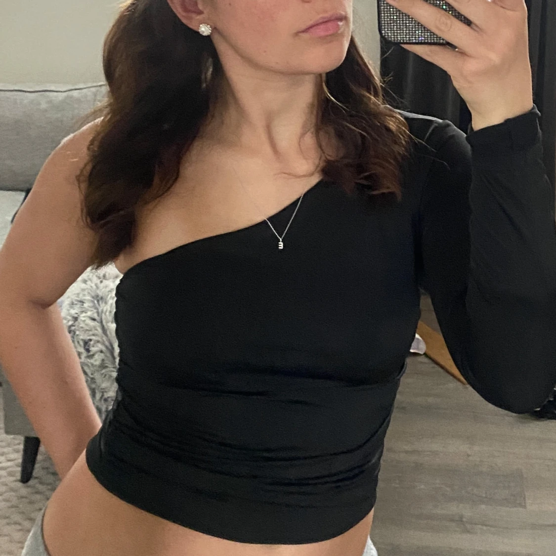Svart oneshoulder topp från Vero Moda. ALDRIG använd då den var lite för liten för mig och aldrig orkade lämna tillbaks 🖤
