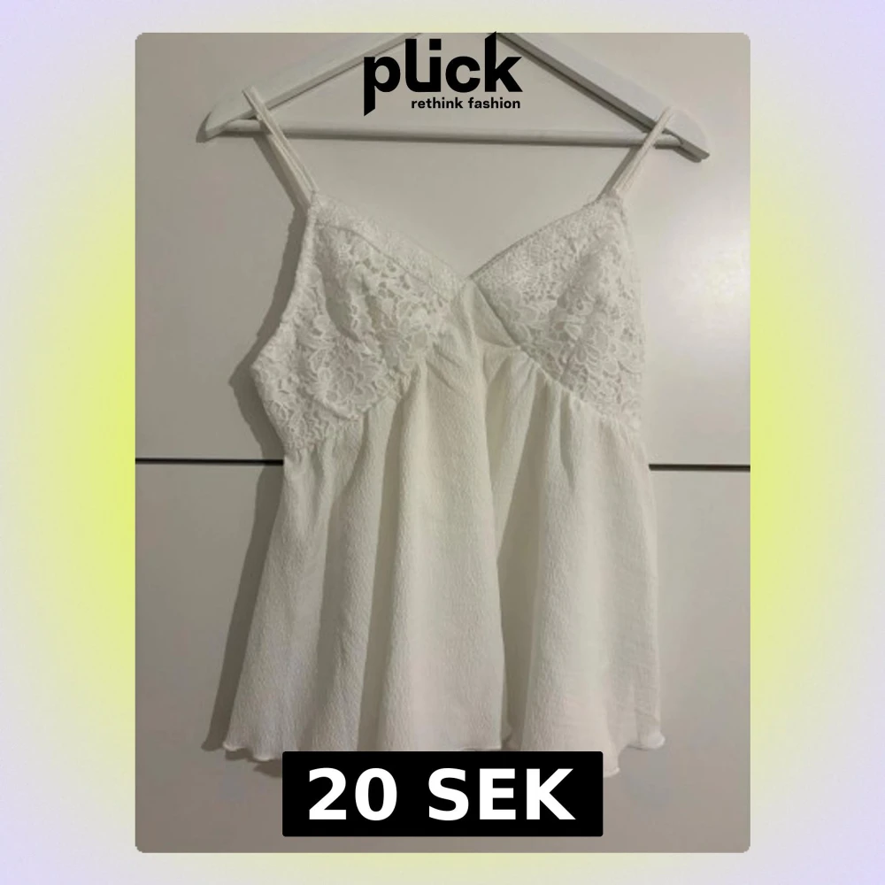 Säljer en söt vit linnetopp från SHEIN med tunna axelband och spetsdetaljer över bysten. Toppen har en flowy passform och är tillverkad i ett lätt material som känns luftigt och fräscht. Perfekt för varma dagar eller som layering-piece.