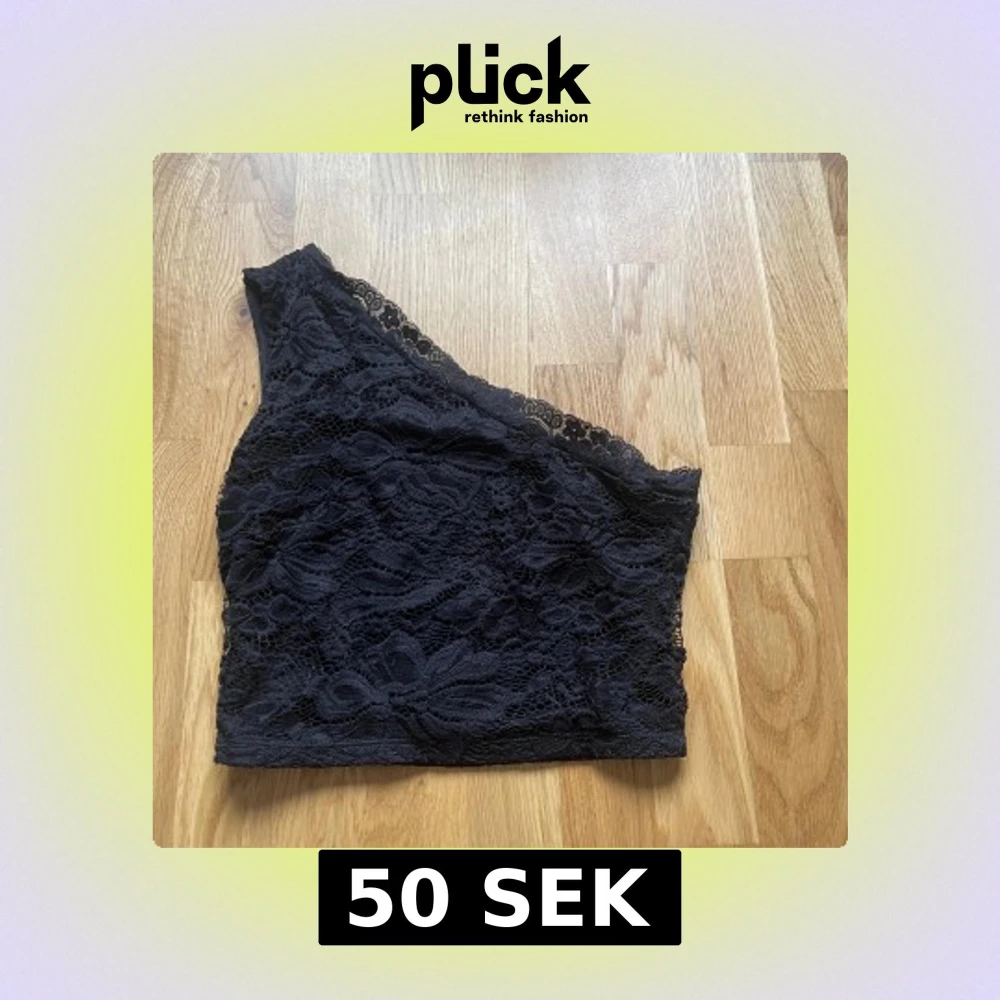 Säljer en svart one shoulder topp i spets med blommigt mönster. Perfekt för dig som vill ha en trendig och elegant look. Toppen har en asymmetrisk axel och är figurnära.