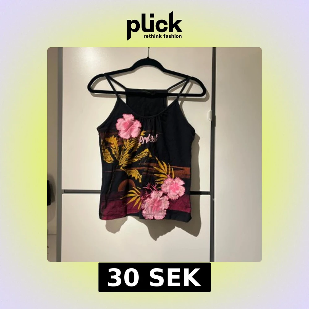 Snyggt svart linne med tunna axelband och färgglatt blommigt tryck i rosa och gult. Linnet har en avslappnad passform och är tillverkat i ett mjukt material.