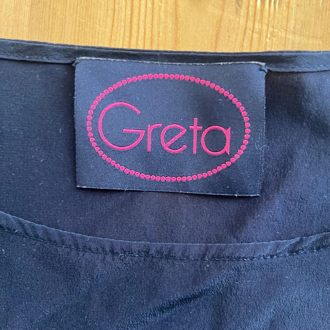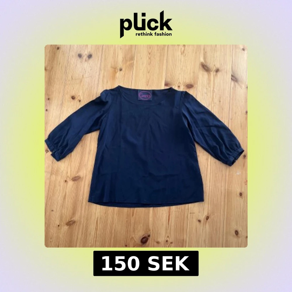 Enkel och stilren mörkblå blus från Greta med rund halsringning och trekvartsärmar. Blusen har en rak passform och är tillverkad i ett mjukt tyg som ger en skön känsla. Perfekt att matcha med jeans eller kjol för en clean look. Saknar en knapp på ärmen men inget man tänker på.