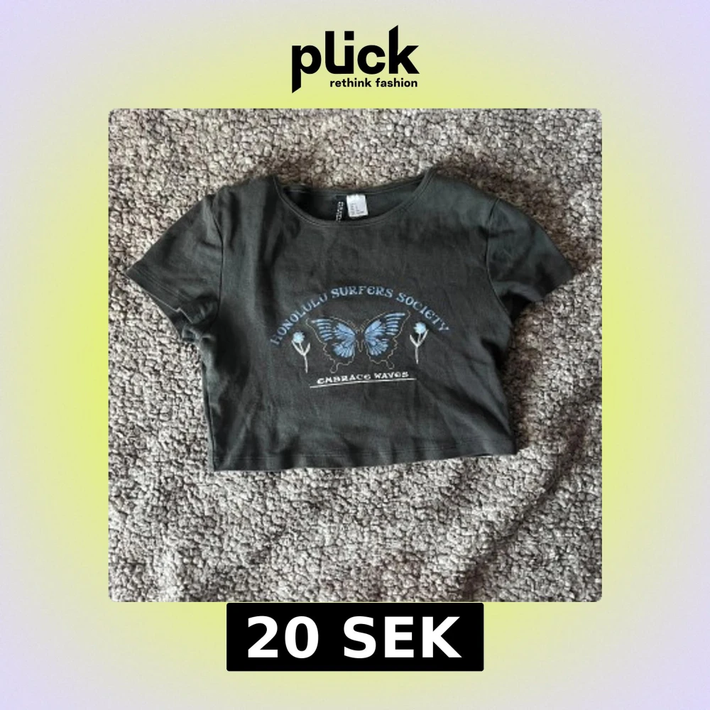 Svart croppad topp med blå fjäril