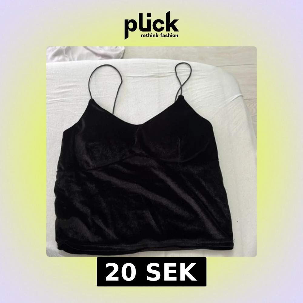 Snygg svart linne-topp i mjuk sammet med smala axelband och v-ringad skärning. Perfekt för dig som gillar en stilren och trendig look. Toppen är croppad och har en lätt glansig finish som ger en lyxig känsla.