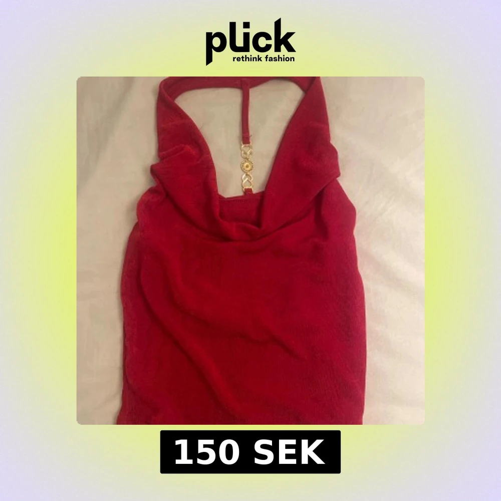 Snygg röd halterneck topp med dekorativa gulddetaljer och strass på ryggen. Perfekt för en kväll ute eller en fest. Toppen har en draperad framsida och är tillverkad i ett mjukt material.