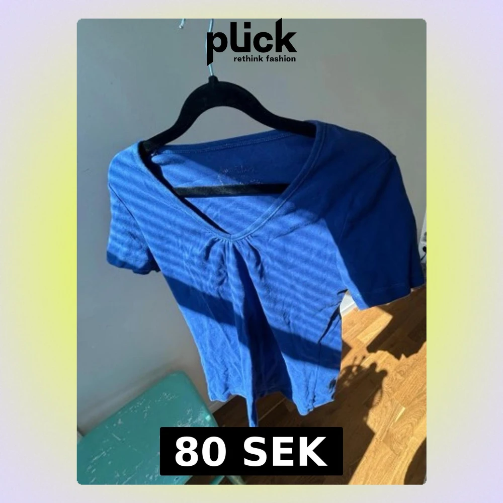 En enkel blå topp med v-ringning och korta ärmar. Toppen har en liten rynkdetalj framtill vid halsen och är gjord i mjukt bomullstyg. Perfekt till jeans eller kjol för en avslappnad look🥂