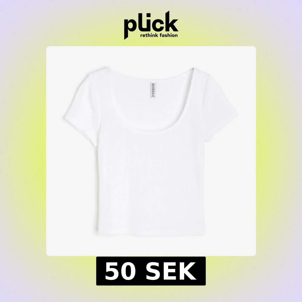 En basic vit croppad topp från H&M Divided med korta ärmar och rund, djup urringning. Tillverkad i mjuk bomull. Aldrig använd och säljs på grund av att ren är för stor för mig