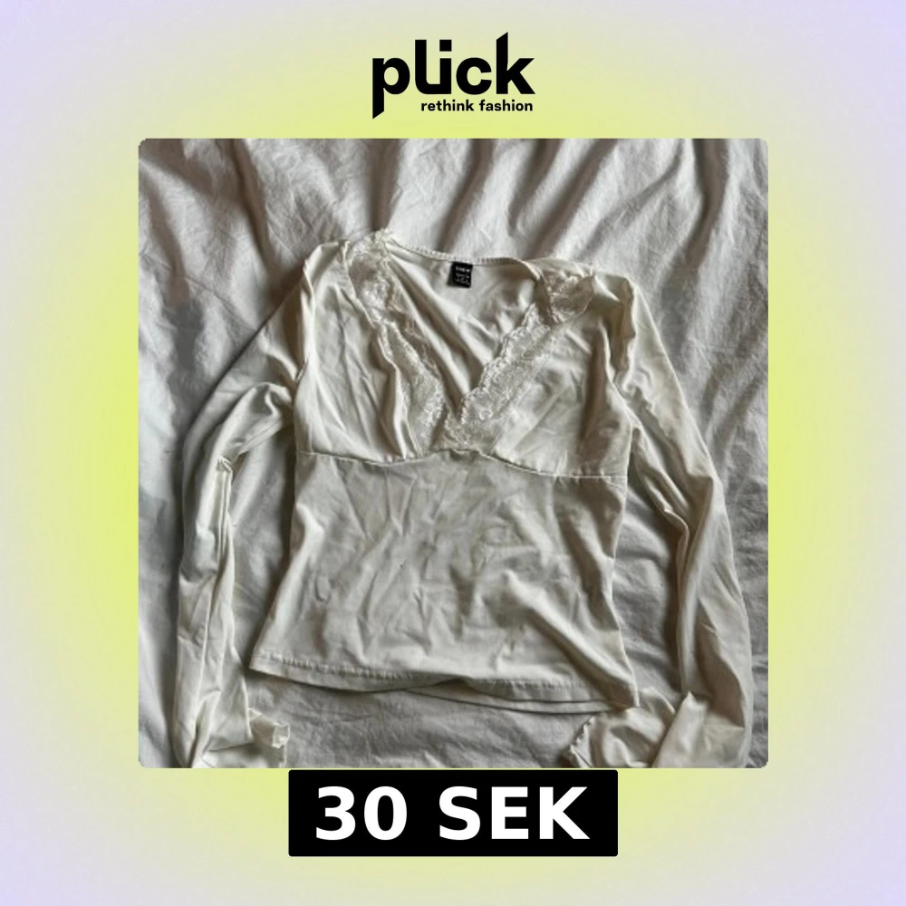 Säljer en vit långärmad topp från SHEIN i storlek S. Toppen har en djup v-ringning med fina spetsdetaljer längs urringningen och är figurnära i modellen.