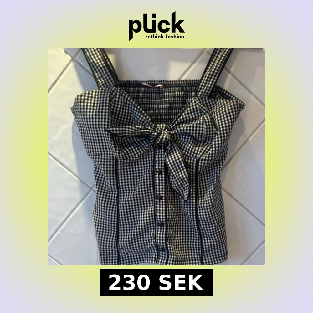 Säljer denna eftertraktade svartvitrutiga topp med rosett framtill. Storlek S men stretchig resår i ryggen!