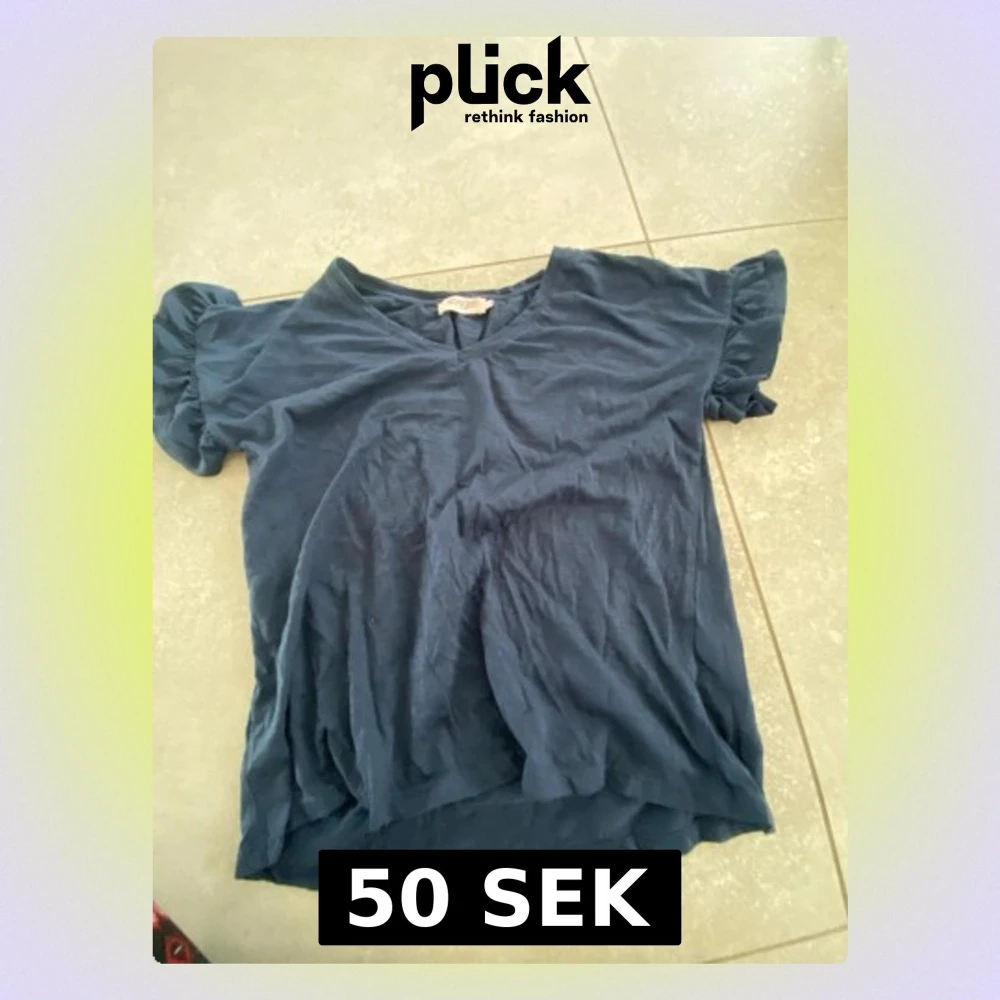 Säljer en mörkblå topp från Soaked in Luxury i storlek S. Toppen har v-ringning och korta ärmar med volangdetalj som ger en söt touch. Tillverkad i mjukt och lätt material, perfekt för varmare dagar.