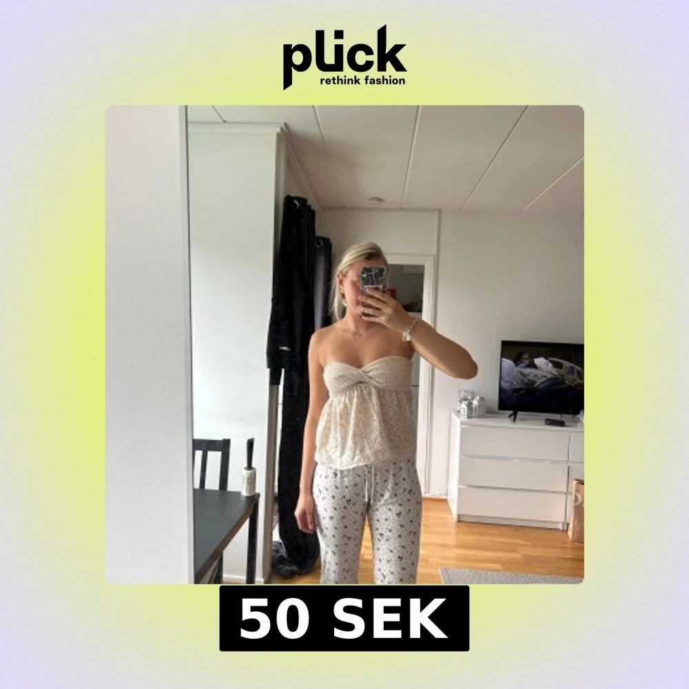 Söt beige tubtopp med bandeau-överdel och broderad spets nertill. Köpt på plick för ett tag sedan, aldrig använts utav mig.