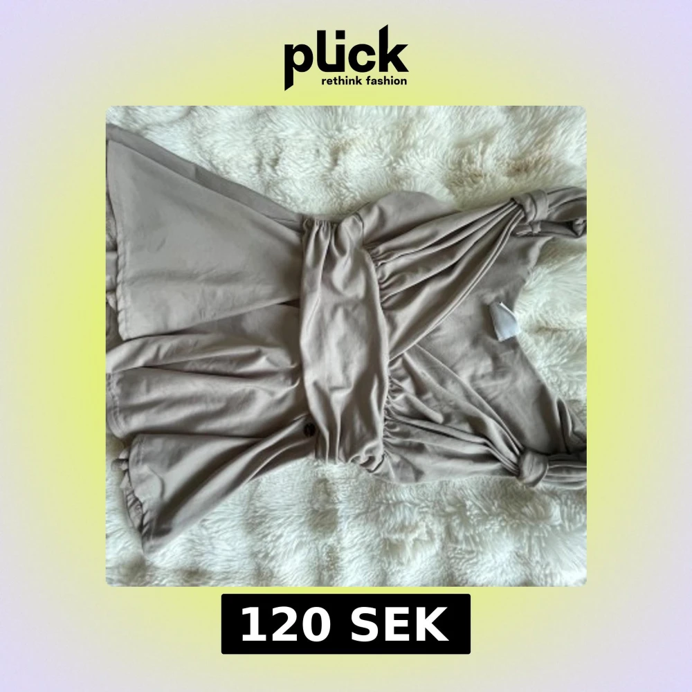 Supersöt beige topp med omlott och knyt vid axeln. Den har en lätt utsvängd nederdel och markerad midja. Mjuk och skön i bomullsmaterial, perfekt för varma dagar. Stilren och enkel att matcha med accessoarer.