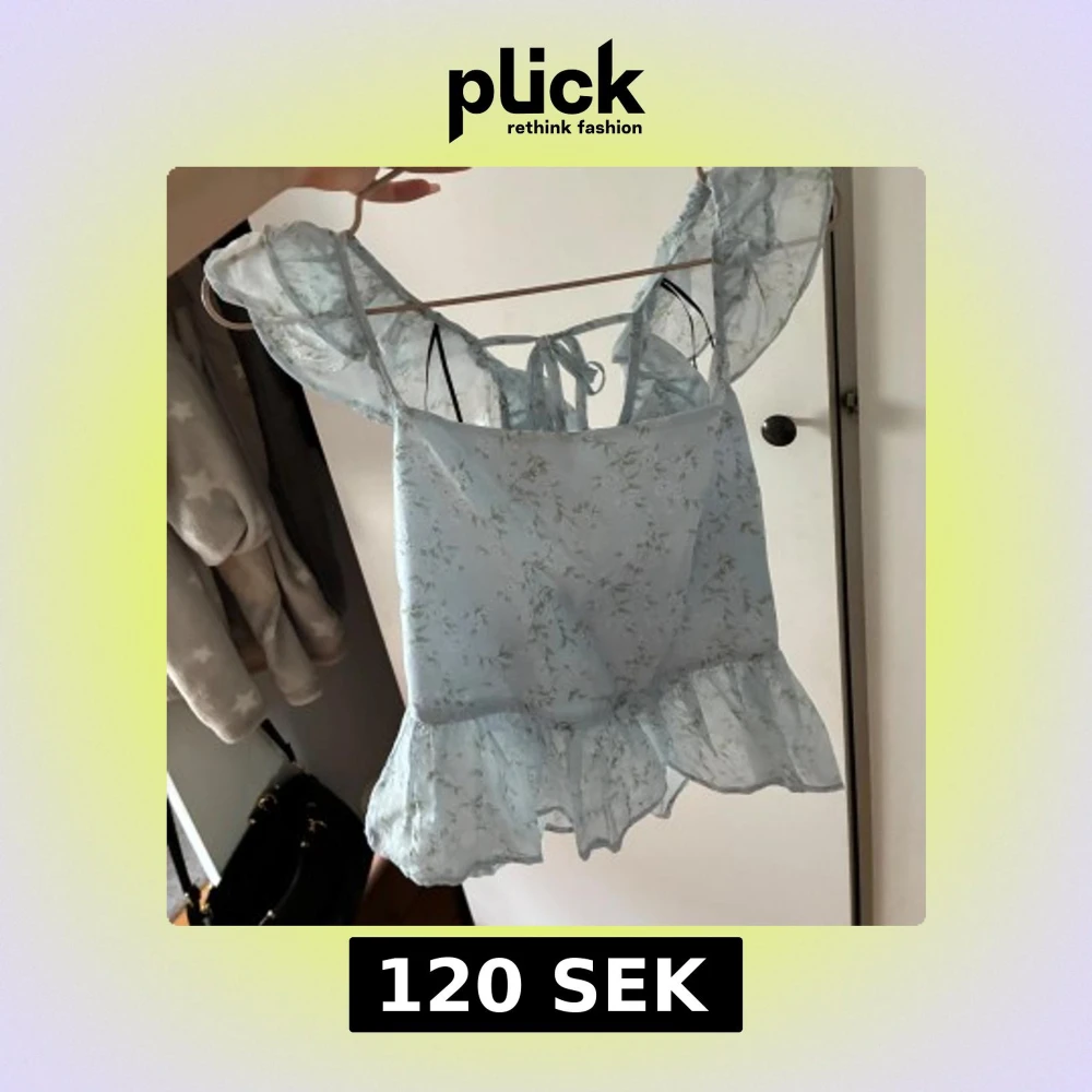 Ljusblå blommig blus med volang