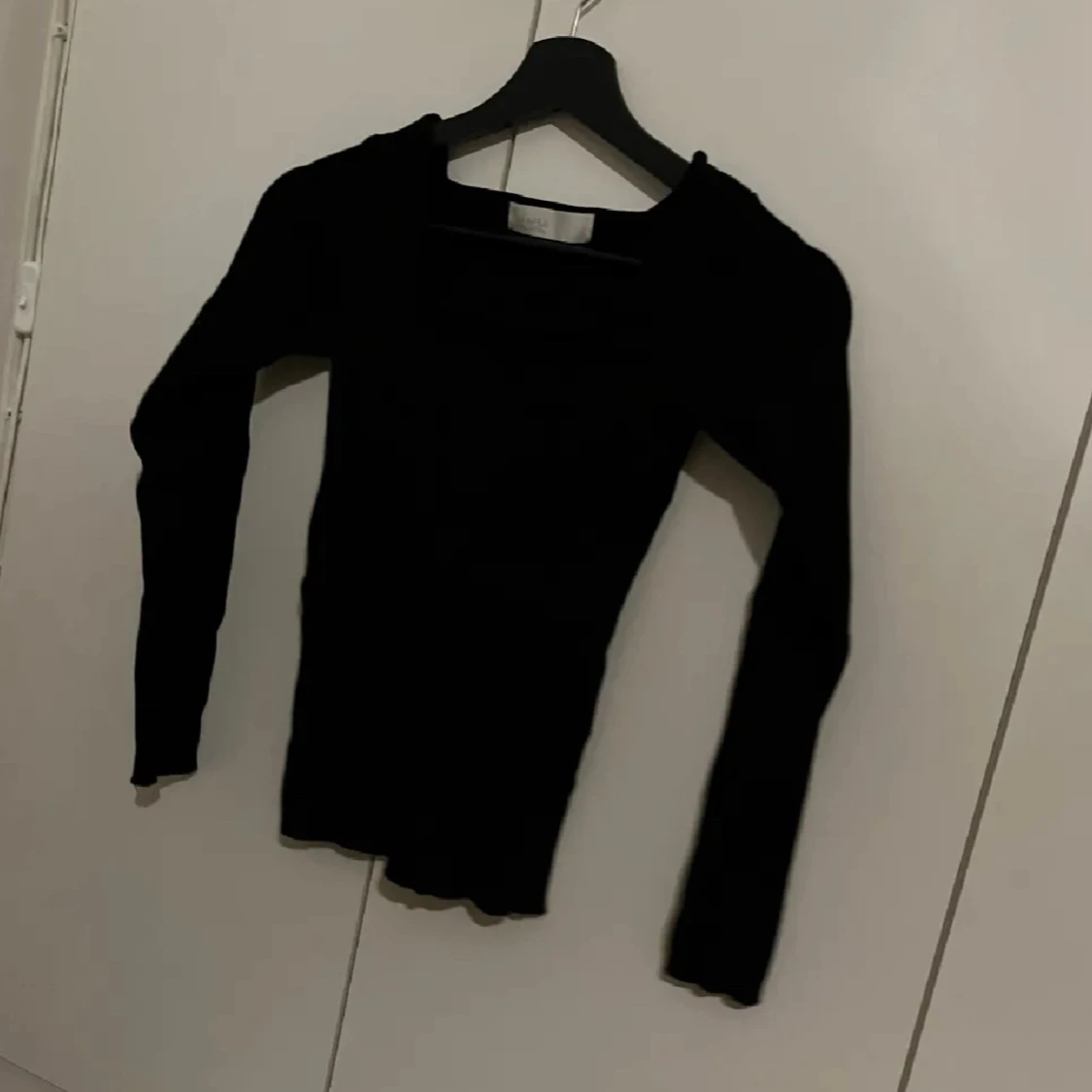 Säljer en stilren svart ribbad tröja från Jamsa Collection. Tröjan har en fyrkantig halsringning och långa ärmar, perfekt för en chic look. Passar bra till både jeans och kjol. Hör av dig vid intresse!💗