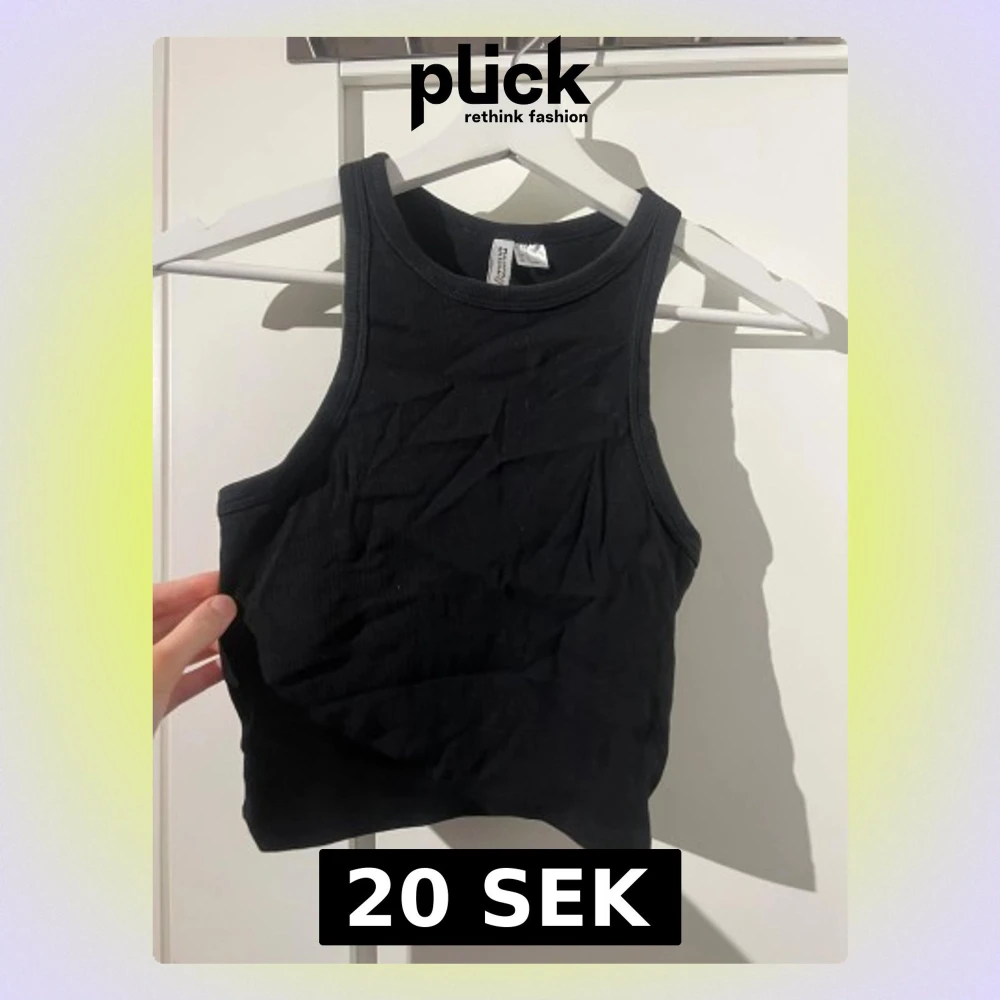 Svart ribbad linnetopp från H&M Divided. Modellen är ärmlös med hög halsringning och croppad passform. Använd fåtal gånger!