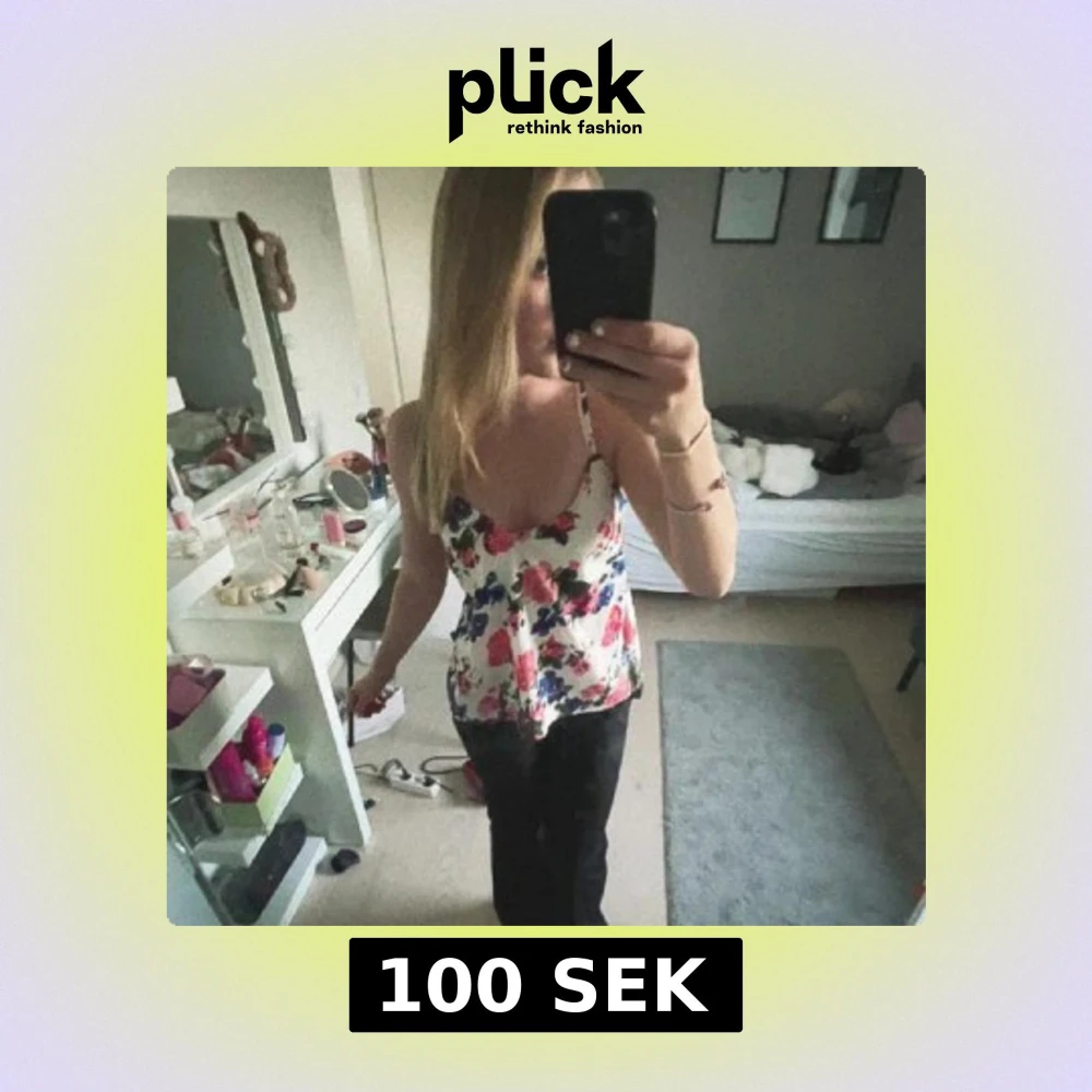 Säljer en söt linnetopp med blommigt mönster i rosa, blått och rött på vit botten. Toppen har smala axelband som korsas och knyts i ryggen, vilket ger en snygg öppen rygg. Perfekt för varma dagar och sommarhäng!