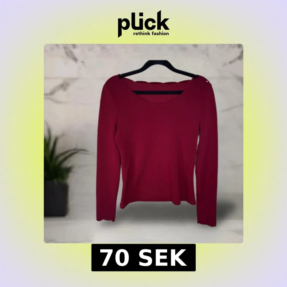 Vinröd långärmad topp från SHEIN i storlek S. Toppen har en unik vågig kant vid halsringningen som ger en snygg detalj. Modellen är figurnära och enkel. Tunt material.