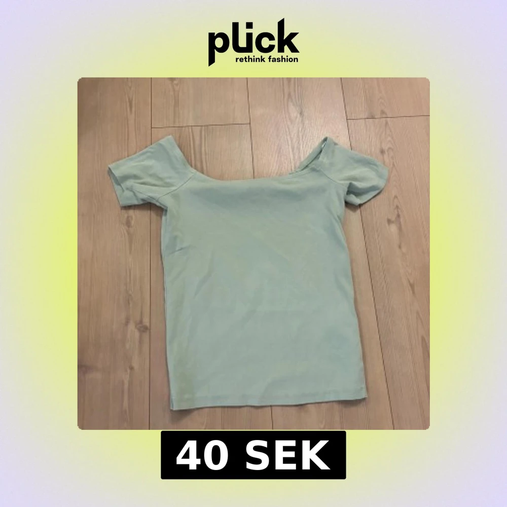 Snygg ljusgrön topp med offshoulder-design och korta ärmar. Enkel och stilren modell som passar perfekt till jeans eller kjol. Mjuk och skön känsla tack vare bomullsmaterialet.