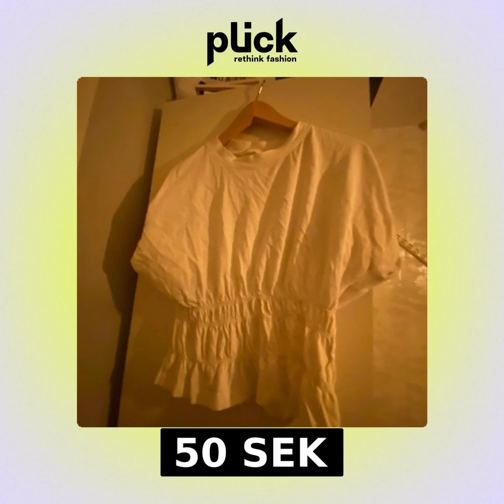 Säljer en söt vit blus med resår i midjan som ger en fin passform. Blusen har korta ärmar och en rund halsringning. Perfekt för en avslappnad stil.