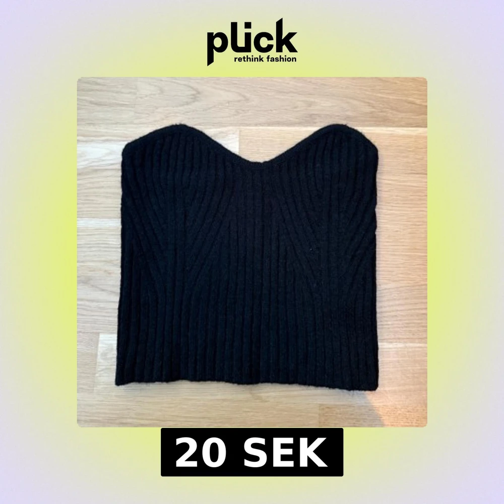 Svart tubtopp med en vågig halslinje och ribbad textur. Perfekt för en utekväll eller en somrig dag. Storlek S