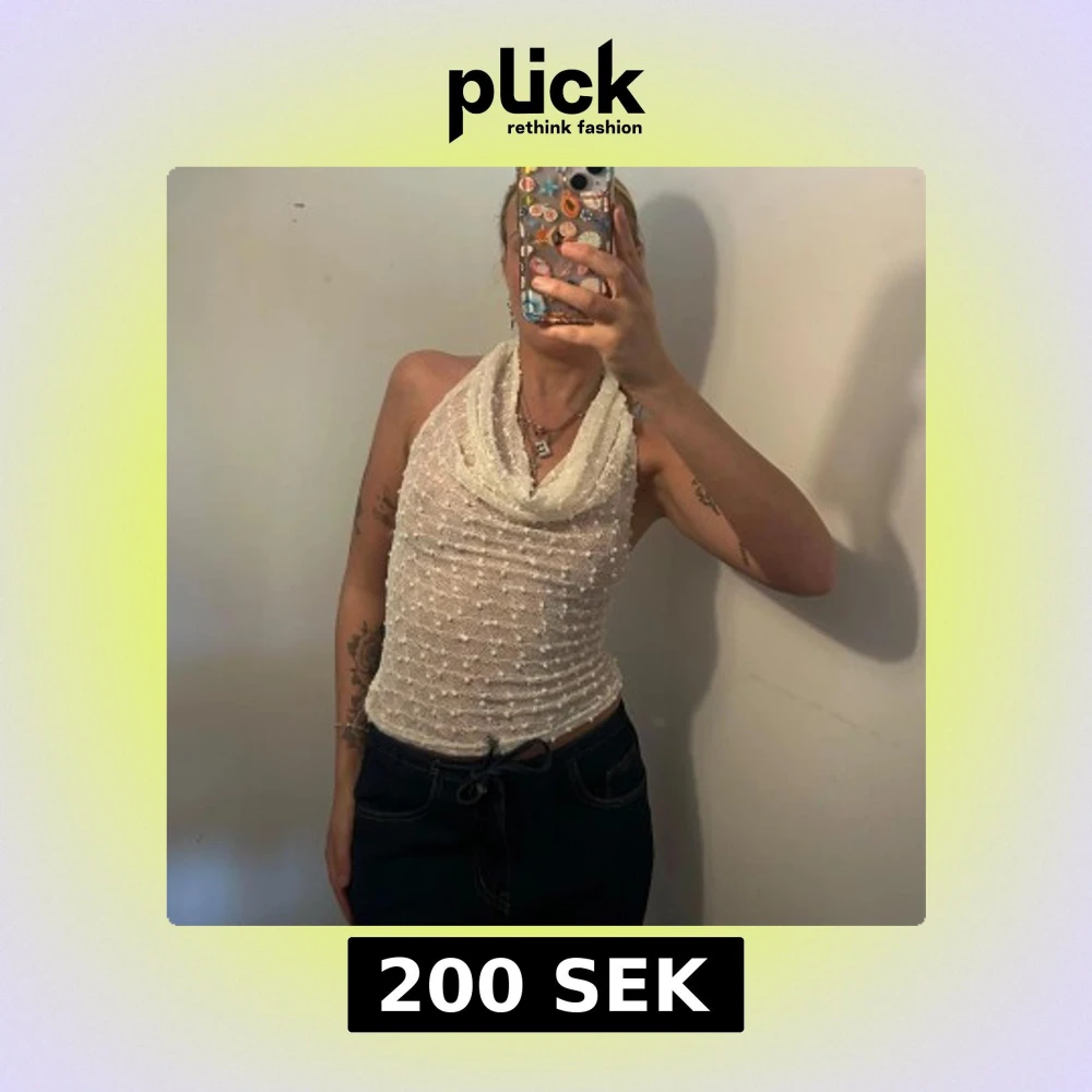 Säljer en vit halterneck topp med prickar i tyget! perfekt för varma dagar! NOTERA: aldrig använd endast testad 🤍🤍