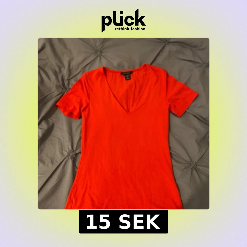 Säljer en enkel och snygg röd t-shirt med v-ringning och korta ärmar. Perfekt att matcha med jeans eller kjol för en stilren look.