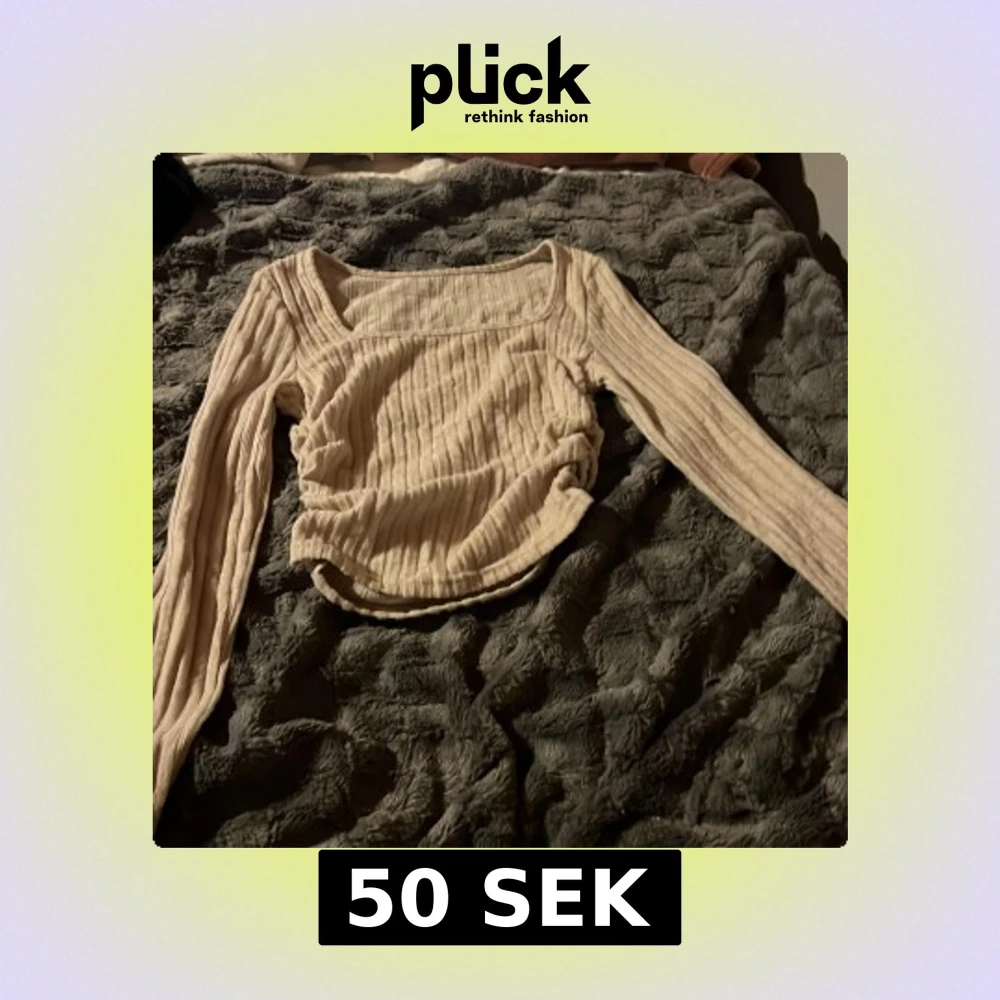 Beige ribbad topp från SHEIN med långa ärmar och snygg rynkdetalj i sidorna. Toppen har fyrkantig ringning och är tillverkad i ett mjukt, stretchigt material.