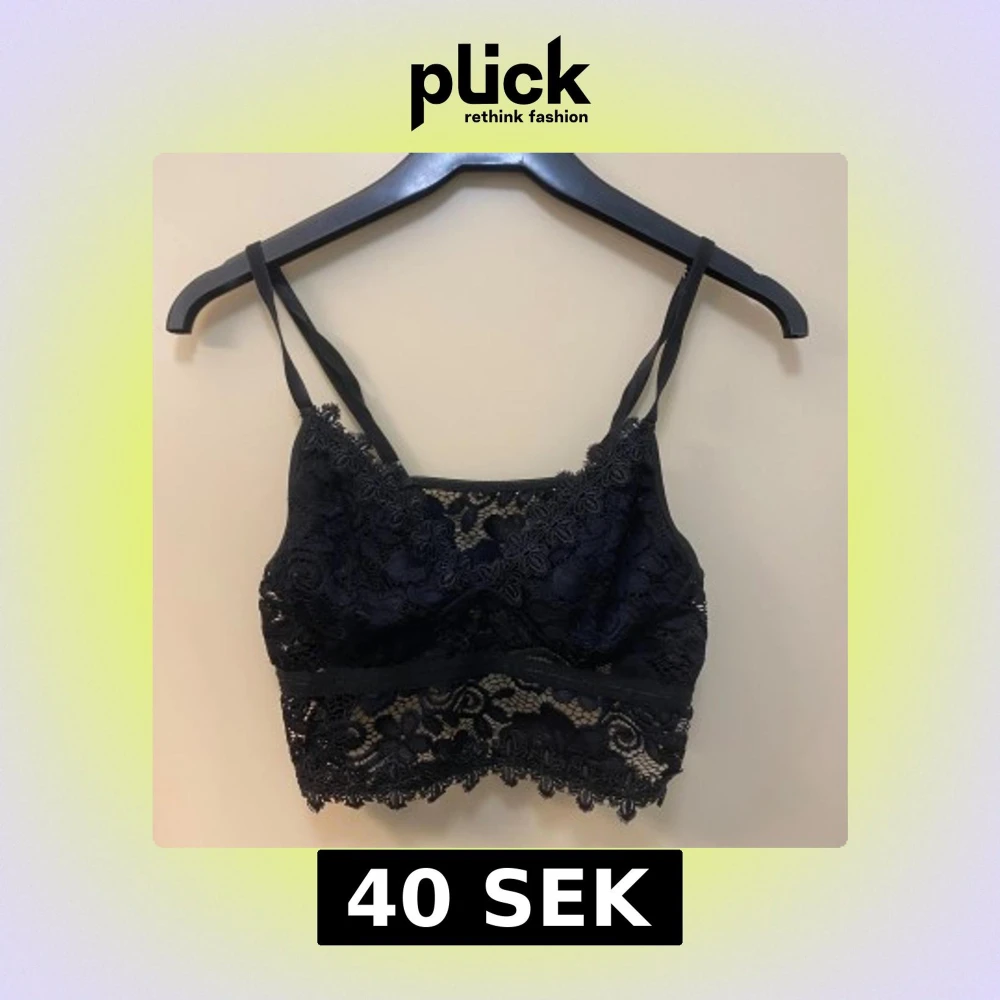 Svart spetsig bralette med transparang rygg och justerbara axelband, som ny. Ställ frågor om ni undrar över något 💕💕