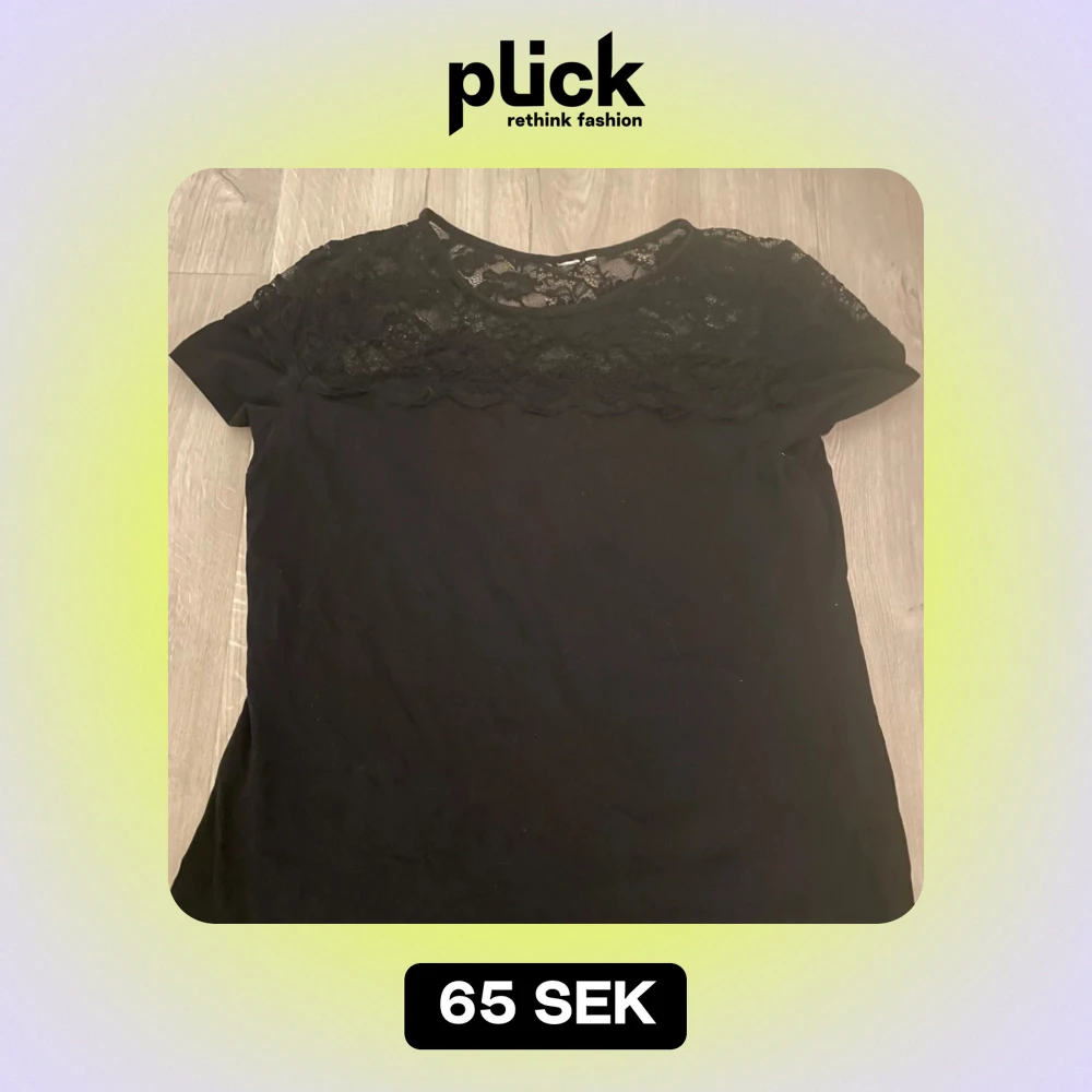 Snygg svart topp med spetsdetaljer över axlarna och bröstet. Kortärmad design som passar perfekt för både vardag och festliga tillfällen. En stilren och elegant look.